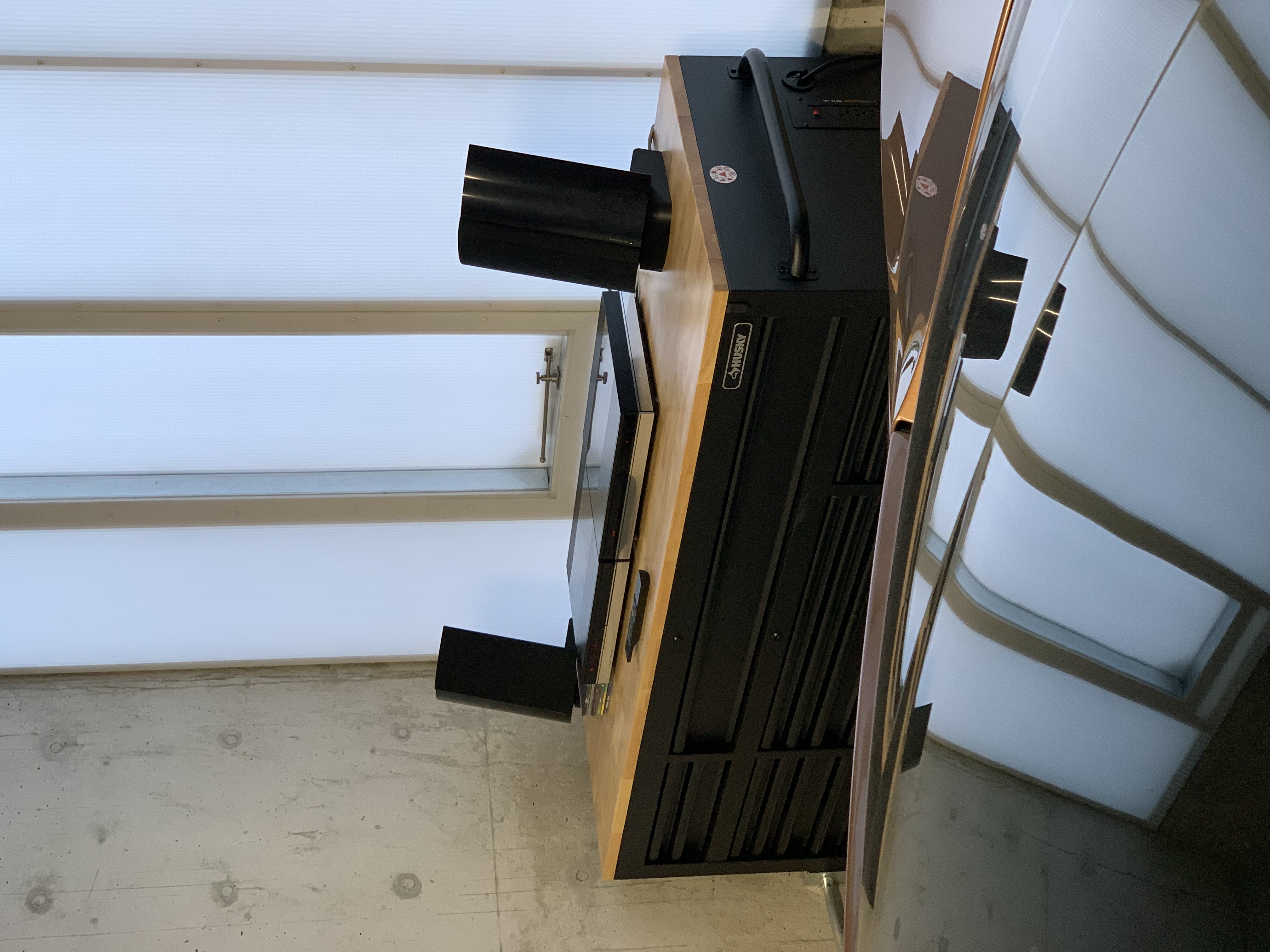 Here’s a BeoLaterGram for you guys. Last year my office expanded to include a pair of garage laboratory spaces for automotive-sized projects. I thought it was only appropriate to kit it out with a small B&O system from my surplus of gear for background tunes.