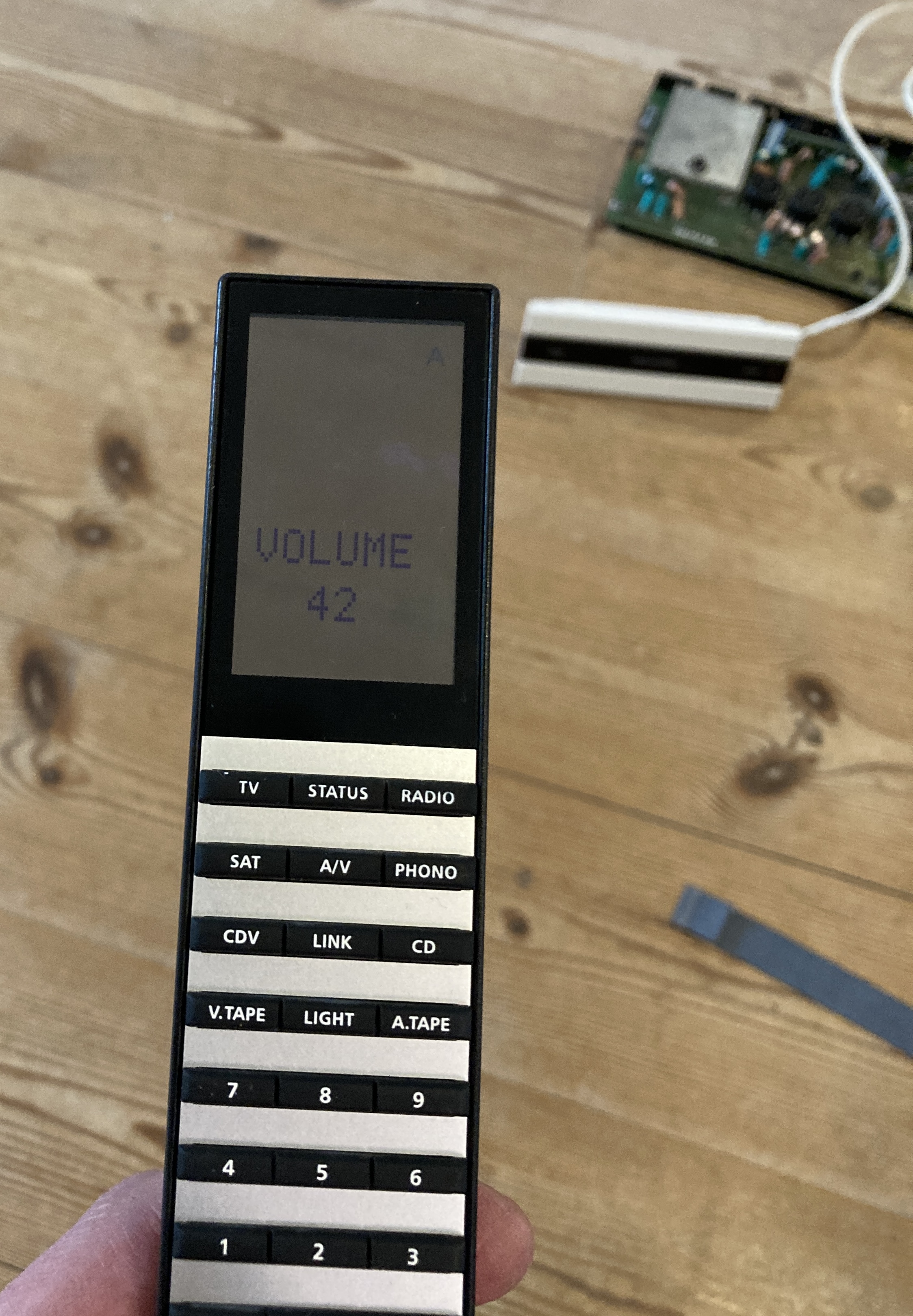 This was very helpfull when I removed the PCB and display from the housing, and when I removed the remains of double sided tape from the edges on the back of the display.However I had to remove it when I remounted the parts as there is need for some flexing in the lenght direction when putting in the PCB after the display has been secured in place with new double sided tape.I did not get to take anymore pictures in the process, as some of it was very fiddly to work on.But to sum up I cleaned all the mechanical parts like rubber keys, aluminum top and housing. Also I gave the housing af fresh layer of black spray paint to cover some of the dents it had on it.After that I remounted the IR PCB with the best of the battery cases, and connected the Keyboard PCB. This parts was very tricky when the IR PCB is already mounted. Maybe a better way would be to connect the PCB’s and then mount it all in one operation?Anyway, after putting it all back together I am pleased to announce that I now have a Beolink 5000 with working 2way functionality and no missing lines in the displayLocation: Denmark