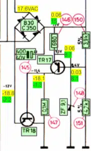 SILVER MemberOne other thing…..the circuit diagram shows 22vac from the transormer to the 15vdc rectifier…..your measuring 17.6vac