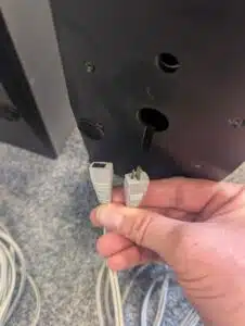 In short, if the cable you have is long enough, visualise your final placement and cut the cable. The Cona will sit between the Beomaster and the Beovoxes acting a bit like a crossover.