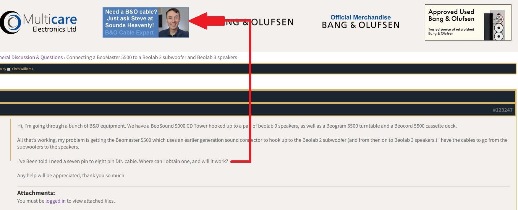 All that’s working, my problem is getting the Beomaster 5500 which uses an earlier generation sound connector to hook up to the Beolab 2 subwoofer (and from then on to Beolab 3 speakers.) I have the cables to go from the subwoofers to the speakers.