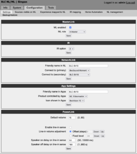 Now, might be very well something wrongly configured now when adding another BLC (BLC-BL35) when trying to 1) have a multiroom zone with the BL3500 and wanting to pull the audio from the various sources were the BLC-BV10 is the unit which used for the BS Moment; here is the configuration for this BLC unit: