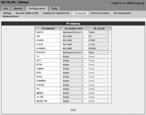 I’ve changed the configuration so that the BLC-BL35 points to itself. This allows it to pull both InTune (via IR commands for RADIO and CD). If I leave the primary and secondary fields empty, it behaves the same way. However, there’s still an issue with getting N.MUSIC (Deezer) – Choosing N.MUSIC just makes a click noise from the speaker and indicates N.MUSIC but stills plays either RADIO (InTune) and if I play CD (from BS9000) and choosing N.MUSIC but no audio.