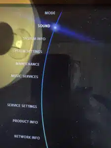 In BeoMaster 5 BeoSound 5 Installation Guide, page 25, is shown how to set speakers, a sub item in the sound menu – this does not bring up the SOUND menu either.