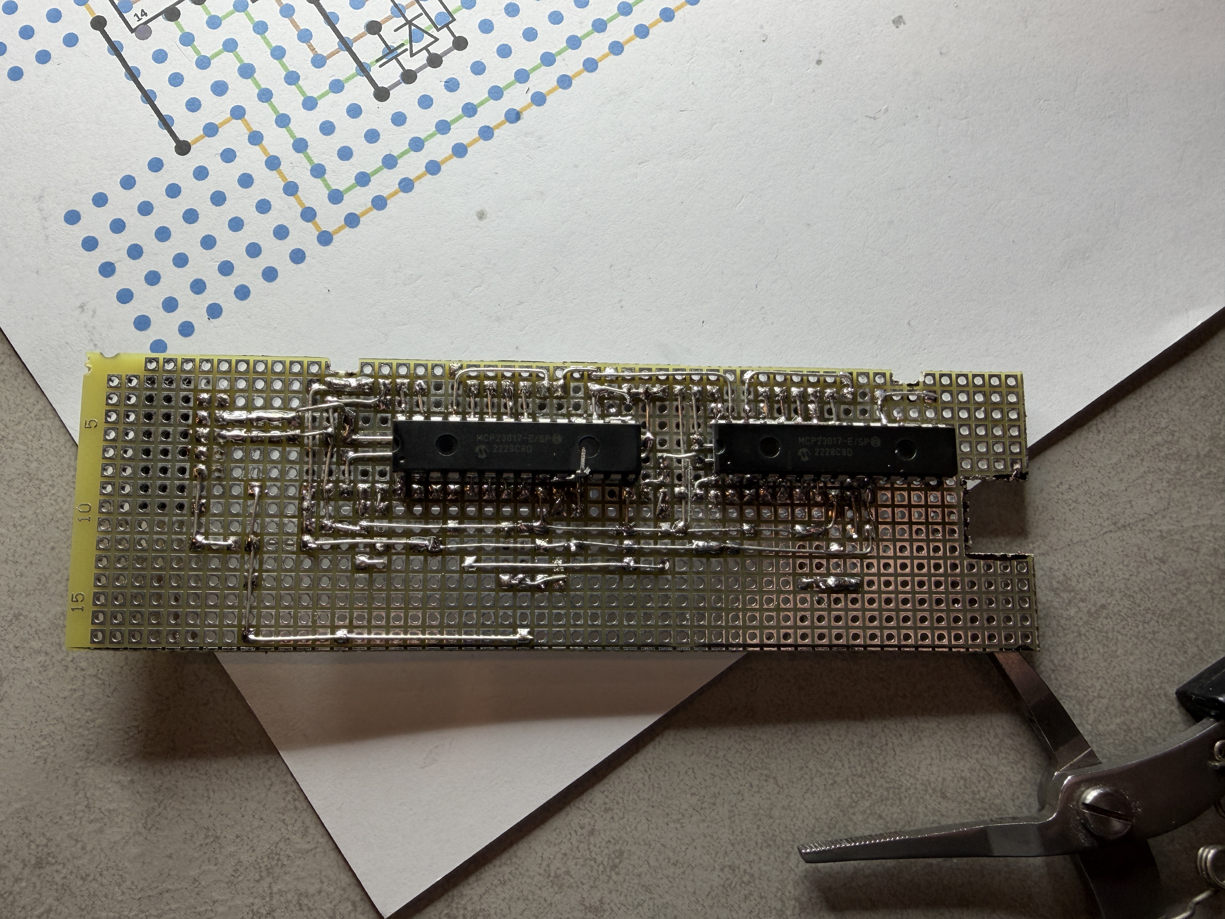 This PCB will be placed on the left side of the frontpanel. It was a bit of a struggle, while the expanders had to be placed on the backside of the PCB and the screens on the front of the PCBOn the right side is 1 screen, which is built the same way.